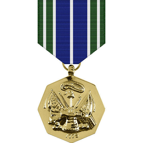 The Army Achievement Medal (AAM) is granted to personnel for outstanding achievement or meritorious service not of a nature that merits the Commendation Medal. The AAM is commonly only given to officers in the pay grade of O-4 and below, as well as enlisted service members below the grade of E-7. The AAM can be granted in a combat area, but for non-combat meritorious service. The Achievement Medal is the lesser of the U.S. military's meritorious service medals, it was also first introduced as a means to recognize the contributions of enlisted personnel and junior officers who were not qualified to receive the higher Commendation Medal or the Meritorious Service Medal. Additional awards are denoted by oak leaf clusters.