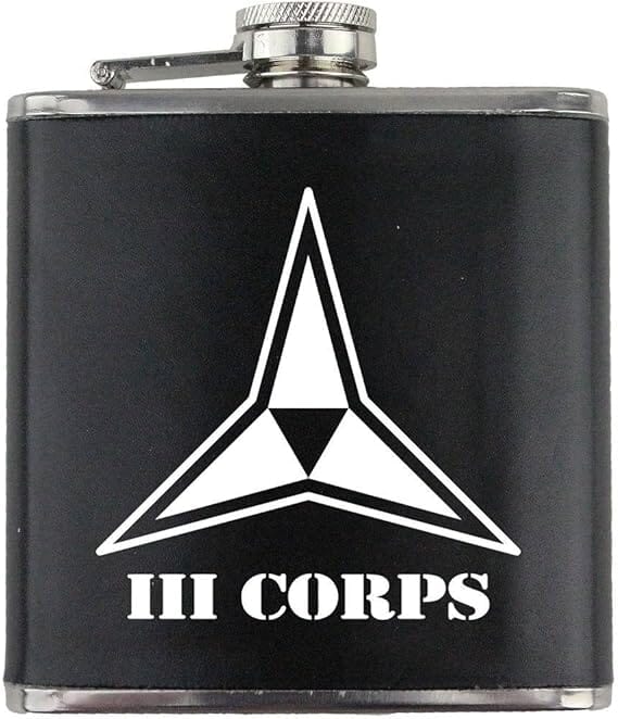 Army III Corps Subdued Stainless Steel Leather Wrapped 6oz. Flask
