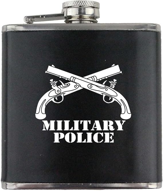 Army Military Police Branch Military Stainless Steel Leather Wrapped 6oz. Flask