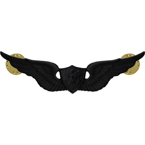 Criteria: Awarded to in three degrees to Army: Basic, Senior, and Master. These particular levels of seniority are based on years of service in the Army and the number of flight hours obtained. Originally called the "Aircraft Crewman Badge," the badge was renamed on February 29, 2000. After renaming the badge, the change was made retroactive to 1947, requiring updates to military records upon request from the service member. The badge is intended for enlisted personnel, however, in rare cases, the decoration can be awarded to officers. For non-rated Army officers who qualify for the Astronaut Badge, but have not yet participated in a qualifying spaceflight, the Army Aviation Badge may be awarded with the astronaut emblem appearing on the central shield. The first version of the Aircrew Badge was issued by the Army Air Forces during the World War II. The badge displayed an emblem denoting enlisted status on its circular shield, or escutcheon, centered between two wings. With the decision to create the U.S. Air Force as a separate branch of service in 1947, the Army was left without an Aircrew Badge until the Korean War. To recognize the continued use of Army aviation, the Aircraft Crewman Badge was created.