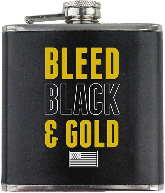 Bleed Black and Gold Army Veteran Stainless Steel Leather Wrapped 6oz. Flask