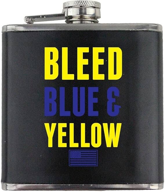 Bleed Blue and Yellow Air Force Veteran Stainless Steel Leather Wrapped 6oz. Flask