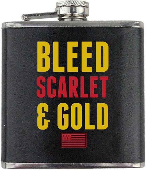 Bleed Scarlet and Gold Marine Corps Veteran Stainless Steel Leather Wrapped 6oz. Flask