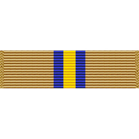 Criteria: This is the California National Guard Commendation Medal Ribbon. It is awarded to any member of the California National Guard that he/she distinguishes themselves while serving in any capacity by meritorious service or achievement to the state of California or the United States. The criteria or meritorious service or achievement is accomplished with distinction but is less than what is required for the California Medal of Merit. This award can be earned more than once and is shown with bronze, silver, and gold oak leaf clusters.