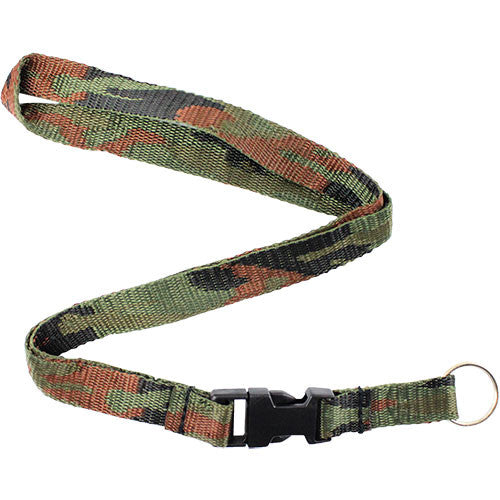 Criteria: The Camouflage Lanyard has a split ring and a easy to use side release buckle. The lanyard is camouflage with no lettering.