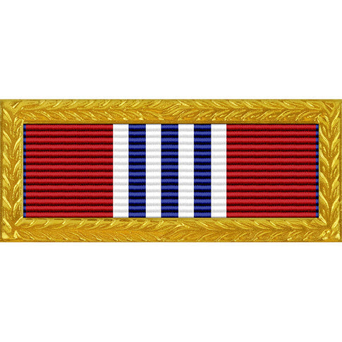 This is the Delaware National Guard Governor's Meritorious Unit Award with Gold Frame Ribbon. The Delaware National Guard Governor's Meritorious Unit Award with Gold Frame Ribbon is awarded to those units which distinguish themselves by outstanding achievement above that of other similar units in the Delaware National Guard. The qualifications for the Unit are as follows.