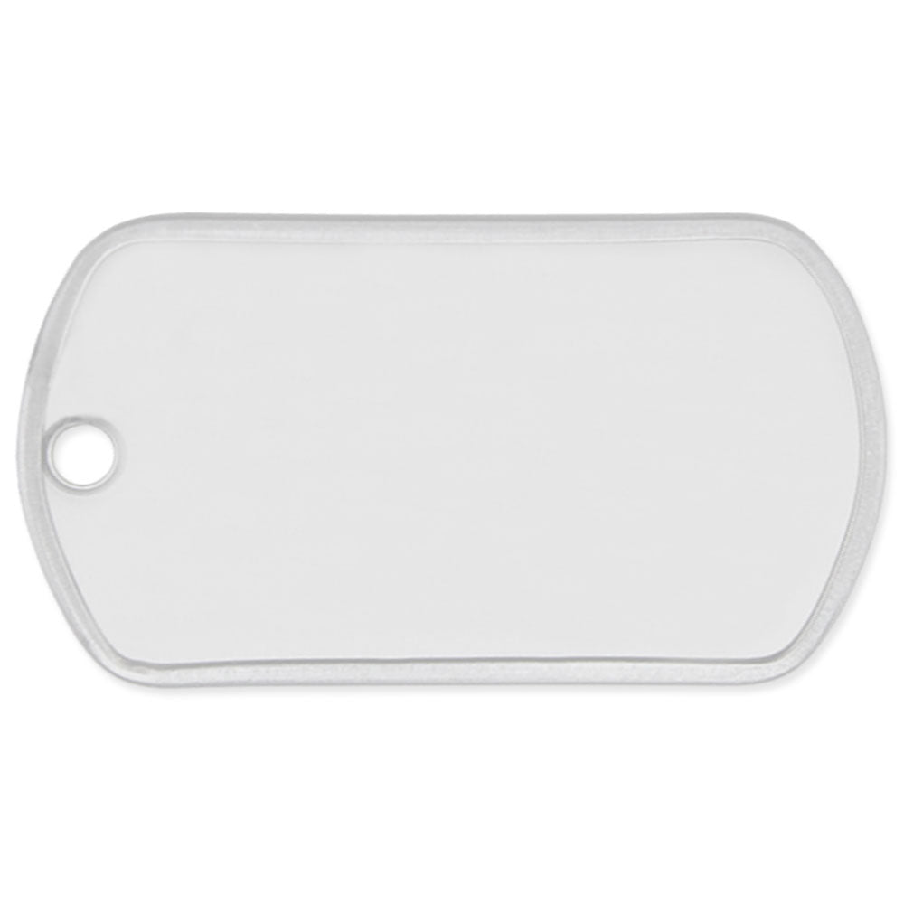 Great for I.D. tags, friendship necklaces, pet identification, or medical alerts, these 2-sided dog tags make great gifts. Made from durable stainless steel, the white polyester coating is perfect for full-color images. Tags have a precut hole, perfect for a bead chain or key ring.