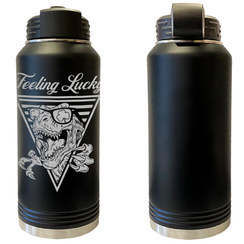 Feeling Lucky Dinosaur Laser Engraved Vacuum Sealed Water Bottles 32oz