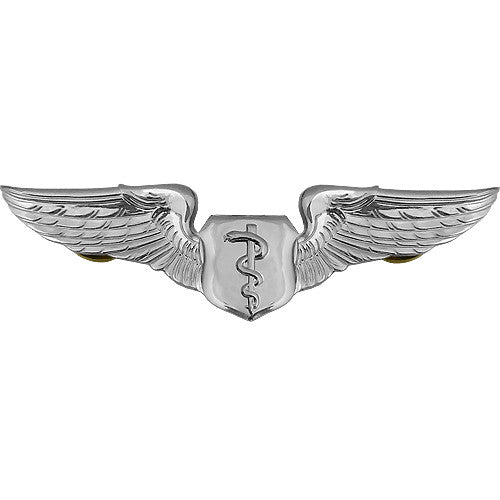 Criteria: Air Force Flight Surgeon Badges are available in basic, senior and chief versions and are worn by officers on A.F. dress blue uniforms. These badges come with 2 clutch-pins in the back to secure to the dress jacket.