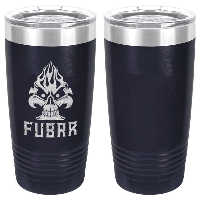 FUBAR Fiery Skull Ace Laser Engraved Vacuum Sealed 20oz Tumbler