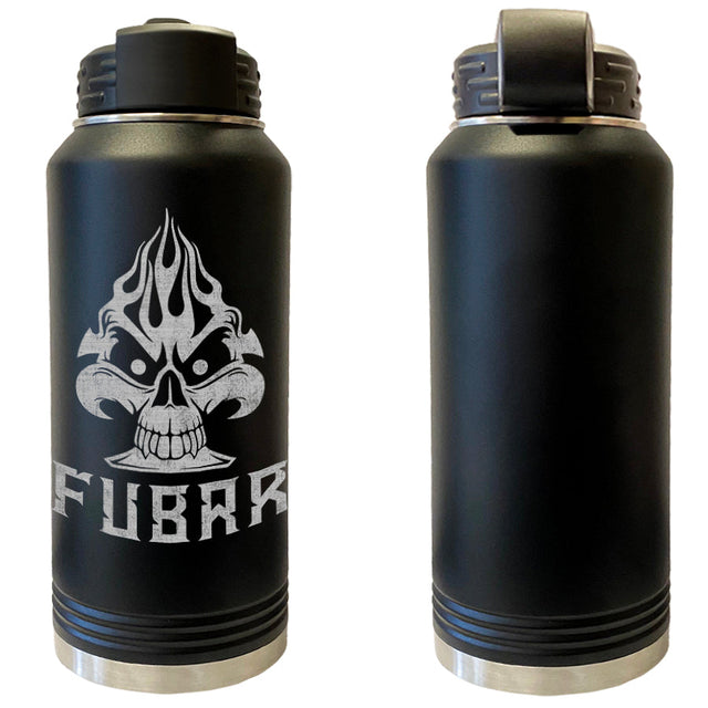 FUBAR Fiery Skull Ace Laser Engraved Vacuum Sealed Water Bottles 32oz