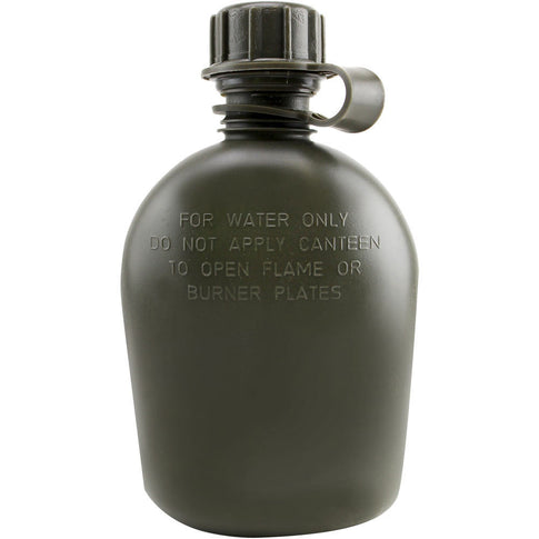The Genuine G.I. 3-Piece 1-Quart OD Plastic Canteen is made in the U.S.A. It's BPA free, and holds one quart (32 ounces) of water.