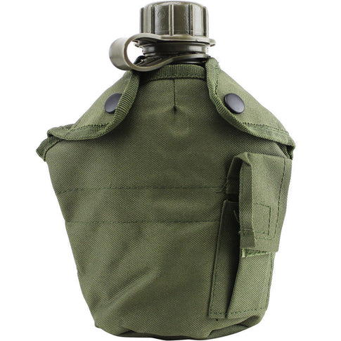 The G.I.-Style OD Canteen Cover is vented, fleece-lined, and comes with a tab pouch. It holds a one-quart canteen.