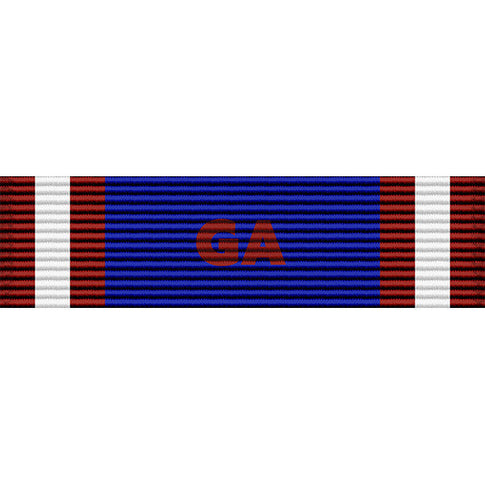 This is the Georgia National Guard State Active Duty Ribbon. The Georgia National Guard State Active Duty Ribbon is earned for ten days of qualifying service performed in a State Active Duty status on GADOD approved Defense Support to Civil Authorities or Guard Augmentation operation missions.