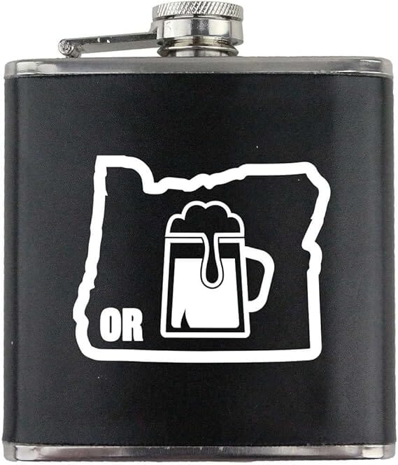 I Beer Oregon Stainless Steel Leather Wrapped 6oz. Flask
