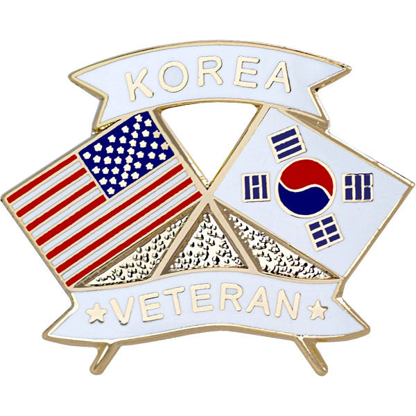 American and Korea Veteran Crossed Flags 1 1/8" Lapel Pin