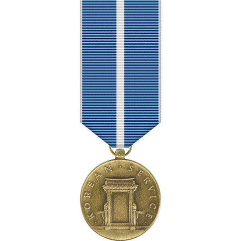 The Korean Service Medal (KSM) is a decoration presented by the United States Armed Forces to individuals who served in the Korean War between June 27, 1950 - July 27, 1954. There are 13 campaigns of the Korean War that are recognized by the United States Department of Defense and each one a member participated in is denoted by a service star on the medal. An Arrowhead Device is authorized to be worn on the service medal by Army personnel who participated in the water landing at Inchon or air attacks on Sukch'on-Such'on and Musan.