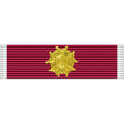 The Legion of Merit Medal (LM, LOM) is a decoration presented by the United States Armed Forces to members of the United States Military, as well as foreign military members and political figures, who have displayed exceptionally meritorious conduct in the performance of outstanding services and achievements. The performance must be of significant importance and far exceed what is expected by normal standards. When the award is presented to foreign parties, it is divided into separate ranking degrees. The degrees are as follows: Chief Commander - issued to a head of state or government; Commander - issued to a chief of staff or higher position that is not head of state; Officer - issued to a general or flag officer that is below the chief of staff, colonel or equivalent rank; Legionnaire - issued to all other service members ranking lower than those previously mentioned. Awards presented to United State military members are not divided into degrees. Subsequent awards are denoted by Oak Leaf Clusters for U.S. Army and Air Force members and Award Stars for U.S. Navy, Marine Corps and Coast Guard members. The Valor device is also authorized to be worn by the U.S. Navy, Marine Corps and Coast Guard, but not by the U.S. Army or Air Force.