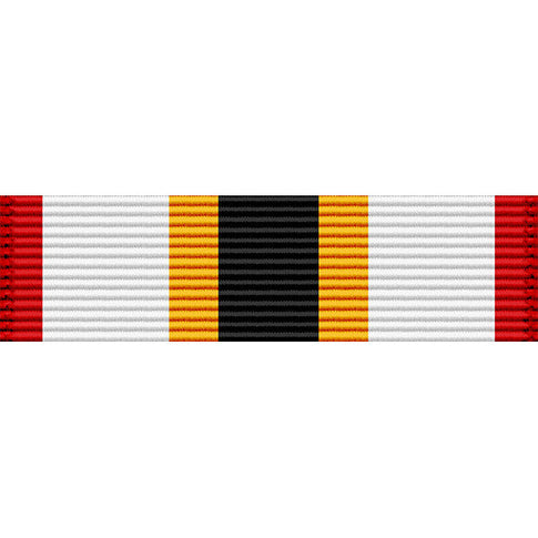 This is the Maryland National Guard Overseas Service ribbon. It is awarded to any member of the Maryland National Guard for doing service outside the continental limits of the United States, not including Alaska and Hawaii, while serving on or after August 2, 1990. Service must be performed for not less than 30 days consecutive or 45 days cumulative of active duty for training at overseas duty locations involving real world contingency operations or overseas training exercises. This award can be earned more than once, but only one award is granted for each period of overseas service.