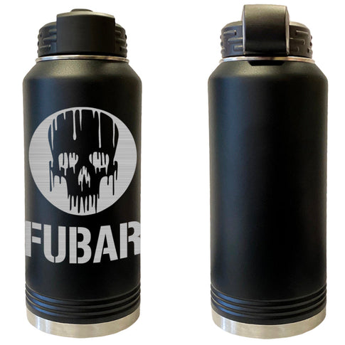 Melting Skull FUBAR Laser Engraved Vacuum Sealed Water Bottles 32oz