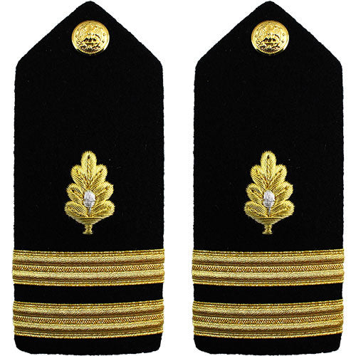 Navy Hard Shoulder Boards are designed to be worn on the following Naval uniforms: Dinner Dress Jacket Uniform (men only), Summer Blue Uniform, Summer Dress White, and Summer White Uniform. Available in O-1 through O-6 rank.