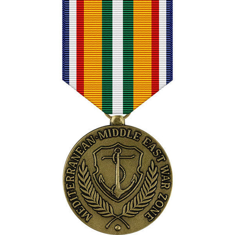 The Merchant Marine Mediterranean-Middle East War Zone Medal is a decoration presented to recognize service aboard Merchant Marine vessels operated by the War Shipping Administration in the Mediterranean-Middle East War Zone between December 7, 1941 - November 8, 1946.
