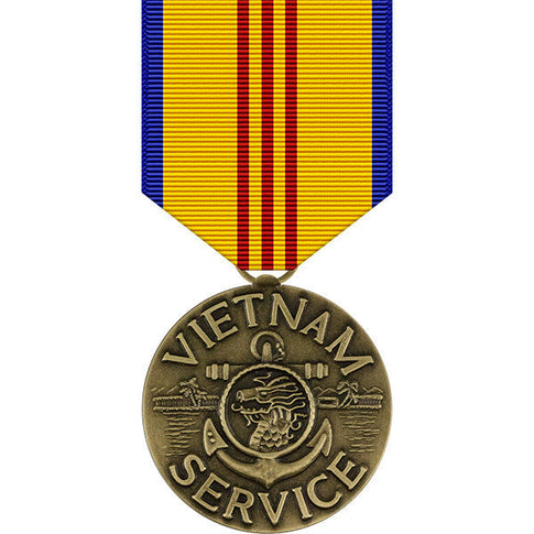The Merchant Marine Vietnam Service Medal (VSM) is a decoration presented to recognize service aboard a merchant marine vessels that displayed the American flag while in Vietnam waters between July 4, 1965 - August 15, 1973. Prior to 1992, this award was a ribbon with no medal. Merchant Marines transport cargo and passengers during times of peace, and serve as an accessory to the Navy and assist in delivering supplies and goods to military operations during times of war.