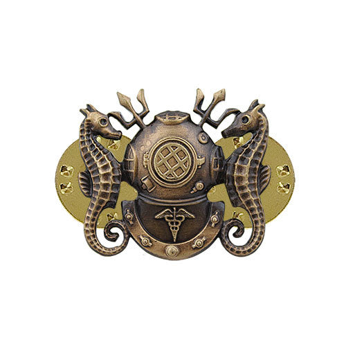 The Naval deep sea diver qualification insignia are awarded in four degrees; Second-Class Diver, First Class Diver, Master Diver, and Diving Officer. However, the Marine Corps does not award the Diving Officer insignia to its officers. In the Navy, the master diver is the most qualified diver; he must be a Chief Petty Officer before applying to attend the Master Diver course.