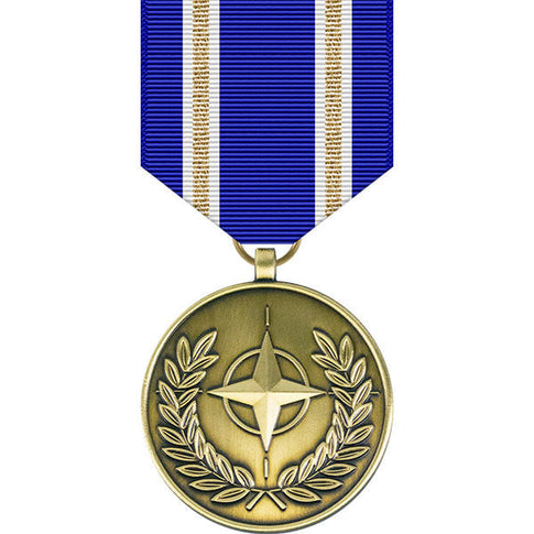 The NATO Article 5 Active Endeavour Medal is a decoration presented to recognize personnel who have participated in the NATO led operation in the international waters of the Mediterranean Sea or airspace following the terrorist attacks on September 11, 2001. To be eligible, members must have been part of the NATO STANAVFORMED or STANAVFORLANT, which are elements of the Standing Naval Force (SBF). Members must have served for 30 consecutive or non-consecutive days from October 26, 2001 to a yet to be determined date. The medal may be presented with an Article 5 clap, however the medal and clasp are not authorized to be worn together by the U.S. military. Subsequent NATO awards for participation in other missions may be represented by a bronze service star worn on the original award ribbon.