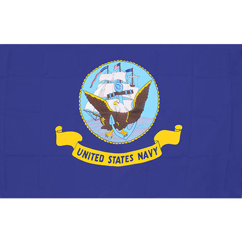Criteria: The Navy 3'x5' Flag is made with non shiny polyester and displays the historic Navy seal. The flag is double stitched with grommets.