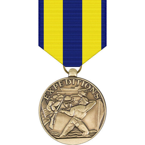The Navy Expeditionary Medal (NEM) is a decoration presented by the United States Navy to recognize members who have landed on foreign shores and participated in operations against enemy forces. Individuals also may be eligible who served in a mission that is considered by an authority to warrant this award. It is retroactive to February 12, 1874. The Navy Expeditionary Medal and the Armed Forces Expeditionary Medal are not authorized to be awarded for the same event and service members who qualify for both must decide which medal they prefer. Subsequent awards are denoted by Service Stars worn on the award ribbon.