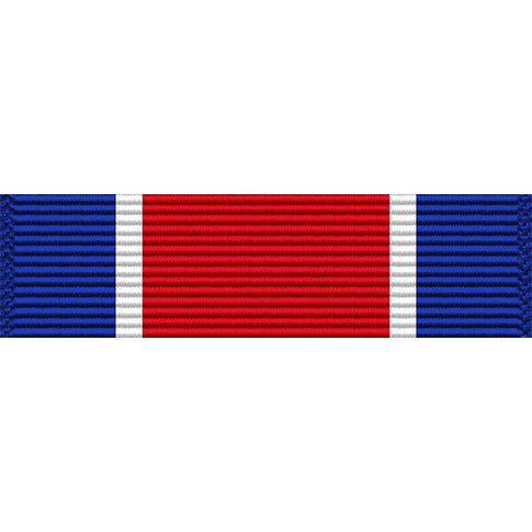 This is the Nevada National Guard Medal of Merit Ribbon. Awarded to any member of the NVARNG who distinguishes themselves by exceptional heroism, meritorious service or meritorious achievement. Subsequent awards are denoted by oak leaf clusters. Awards for heroism are denoted by a single bronze "V" device.