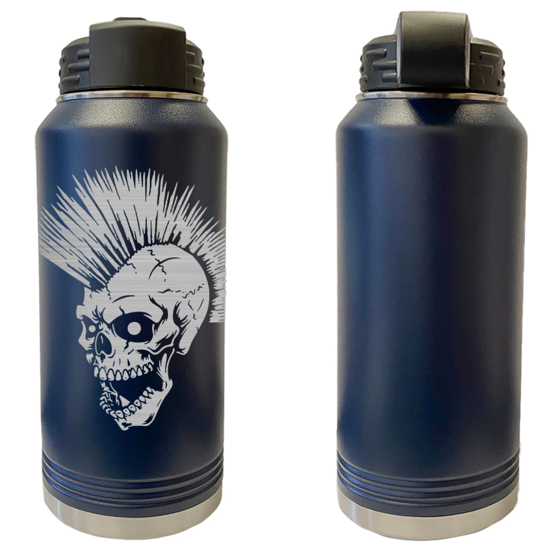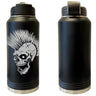 Punk Skull Laser Engraved Vacuum Sealed Water Bottles 32oz