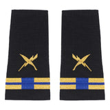 Navy Soft Shoulder Boards are designed to be worn on the Service Dress Blue Sweater Uniform and Epauletted White Shirt. Available in W-2 through W-3 rank.