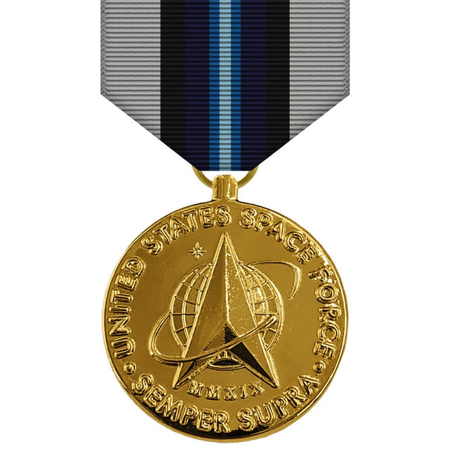 The Space Force Good Conduct Medal (SFGCM) is awarded to USSF Guardians who meet the eligibility requirements of three years service in the USSF; demonstrating the Space Force core values of Character, Connection, Commitment, and Courage.