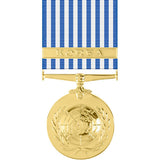 The United Nations Service Medal for Korea or United Nations Service Medal is an international decoration presented by the United Nations to service members who participated in the Korean War between June 27, 1950 - July 27, 1954. It was the first international award ever given and was created to acknowledge the multinational participation in the defense of South Korea against North Korea. Originally referred to as simply the United Nations Service Medal, the name was changed on November 22, 1961 to distinguish between subsequent UN mission medals.