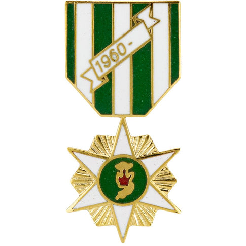 The Republic of Vietnam Campaign Medal (VCM, VNCM) was a decoration presented by South Vietnam to recognize members of allied forces who served in the Vietnam War for a period of at least six months. Service members who were wounded, captured or killed in action were automatically awarded the medal regardless of time served. The "1960 Bar" device is given with the medal and was meant to indicate the years the war was fought from beginning to finish. Since the Republic of Vietnam was conquered by North Vietnam in 1975, the government no longer existed and no end date was ever made for the bar.
