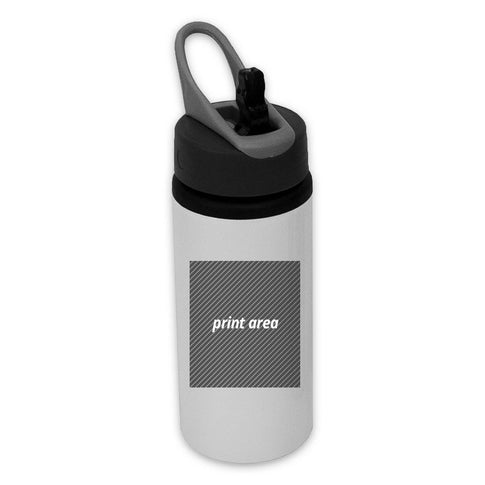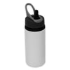 Stainless steel water bottle. Lid: medium mouth with stem/straw top. Color: White. Volume: 600 ml / 20 oz. Bottle Size: 9-3/8" high.
