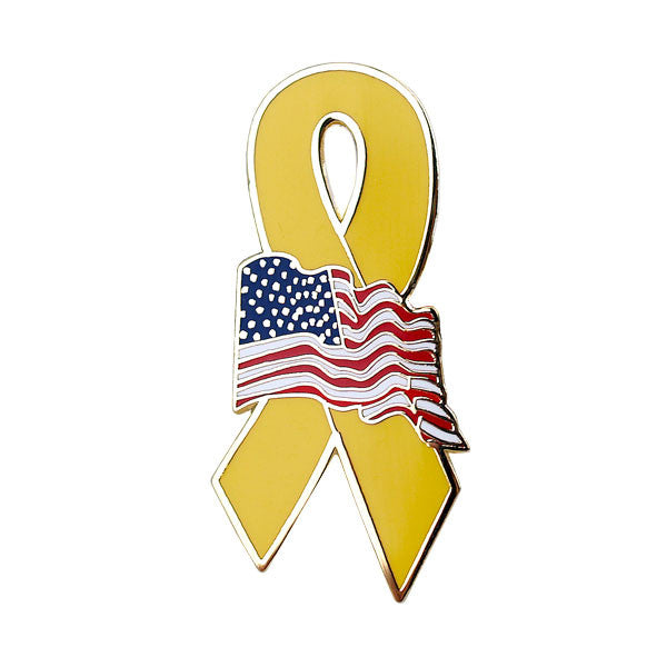 Yellow Ribbon with American Flag 1 1/4" Lapel Pin